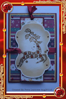 Zo is de kaart als je de slider helemaal hebt uitgetrokken. Ook hier heb ik op de kleine kaartjes de randen bewerkt met distress ink. De teksten zijn van een stempelset van Hot Off The Press. Wat kleine hotfix steentjes op Rudolf rug voor een beetje extra blingbling. Was er leuk om te doen zon kaart maken, stond ook al lang op mijn to-do list. Die word steeds langer ipv korter hihi...Liefs en geniet van deze lekkere zonnige dag Peet