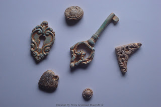 Ik heb deze embellisments eerst met de Paintdabber Gold geverft en na droging heb ik verschillende kleuren Rub`n Buff gebruikt. Dit kan ik leuk op mijn gepimpte dozen, flessen enz enz gebruiken. Ga ik nu eerst met ed kids kleuren en wie weet nog meer met klei spelen...Fijne Zondag Peet